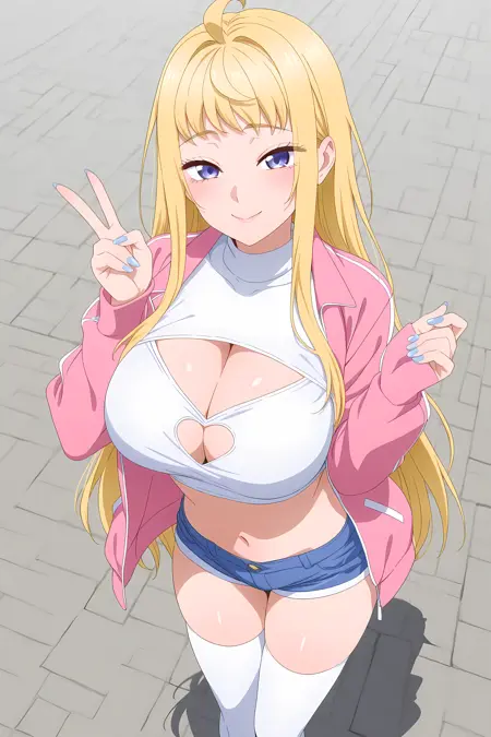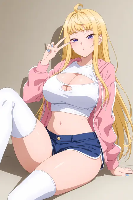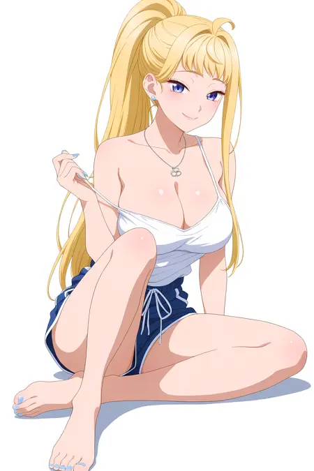アクティベーションタグは「minami fuyuki, ahoge, blonde hair, long hair, blue eyes, bangs」で、目の色の代替としては「purple eyes」を使用できます。