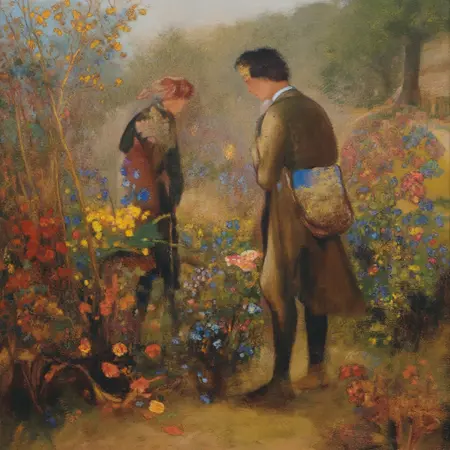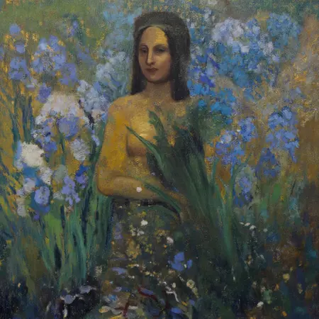 オディロン・レドン(1840年4月20日、フランス・ボルドー生 - 1916年7月6日、パリ没)は、豊かな詩的感性と想像力を備えたフランスの象徴主義画家、リトグラフ師、エッチング師であり、その作品は二つの異なる方向性に発展した。彼の版画は、幽霊的で幻想的、しばしば不気味なテーマを探求し、シュルレアリスムやダダイズムの運動を予見した。一方、彼の油絵やパステル画は主に花を題材とした静物画であり、アンリ・マティスをはじめとする多くの画家から重要な色彩感覚の持ち主として称賛された。