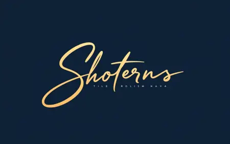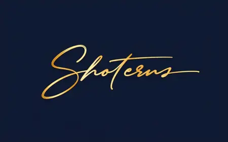 提示:手写签名。姓名:"Shoterns"。签名以金色优雅地书写在深蓝色背景上,设计线条流畅,展现出优雅与精致感。