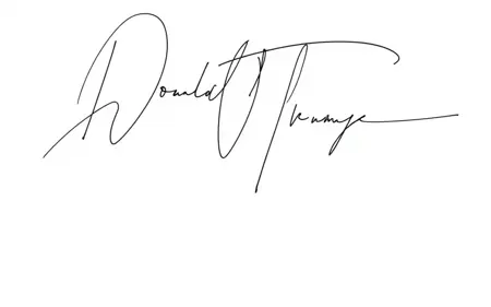 提示:手写签名。姓名:"Donald Trump"。以黑色草书书写在白色背景上。