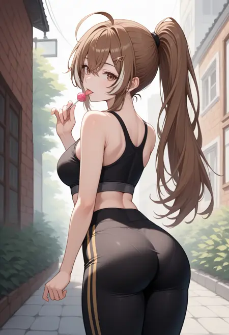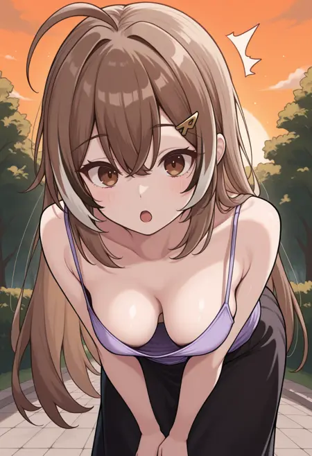 N4nashiMum3i, 棕色眼睛, 棕色头发, 长发, 条纹额发, 天线发, 马尾, 羽毛发圈, 发夹