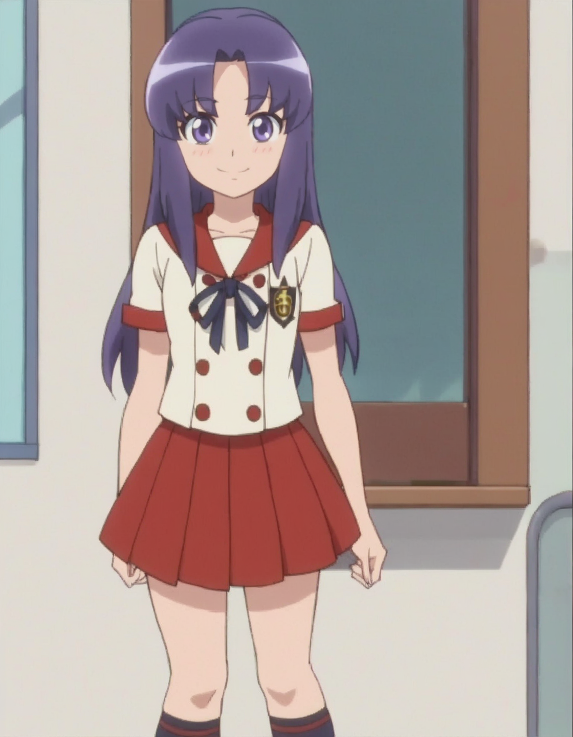 score_9, score_8_up, score_7_up, anime screencap, solo,1girl,hikawaiona,school uniform,skirt, serafuku, socks, kneehighs, red skirt,lora:hikawaiona:0.8