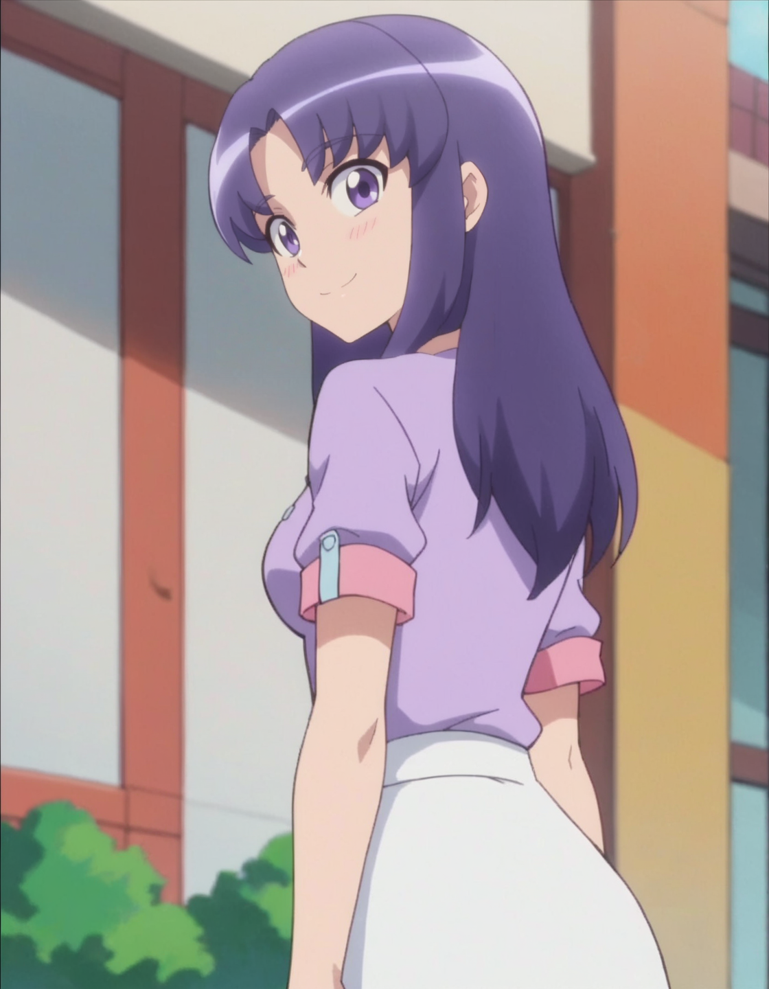 score_9, score_8_up, score_7_up, anime screencap, solo,1girl,hikawaiona,purple skirt,purple jacket, white shirt, long sleeves,lora:hikawaiona:0.8