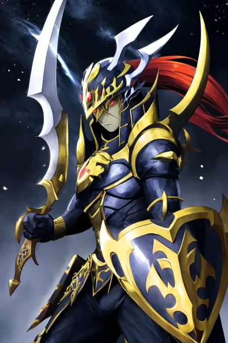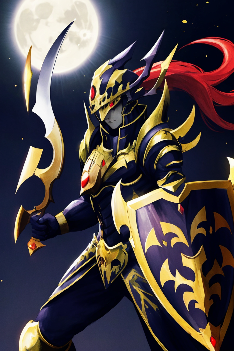 Black Luster Soldier, the card from Yu-Gi-Oh!, trained on animefull. Trigger word is bls.