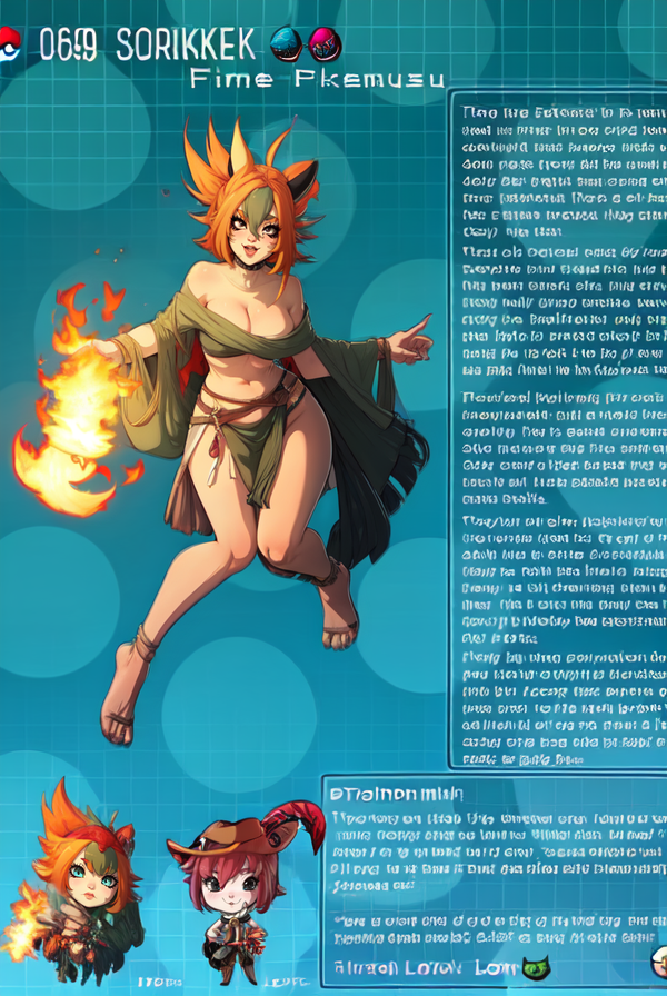 이 학습은 처음 약 160마리의 포켓몬에 대한 pokedex 항목을 기반으로 진행되었습니다. 당신만의 포켓몬을 위한 좋은 프롬프트 예시는 다음과 같습니다:
