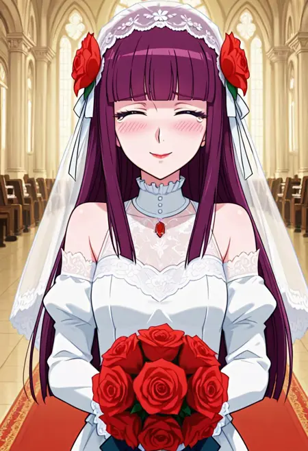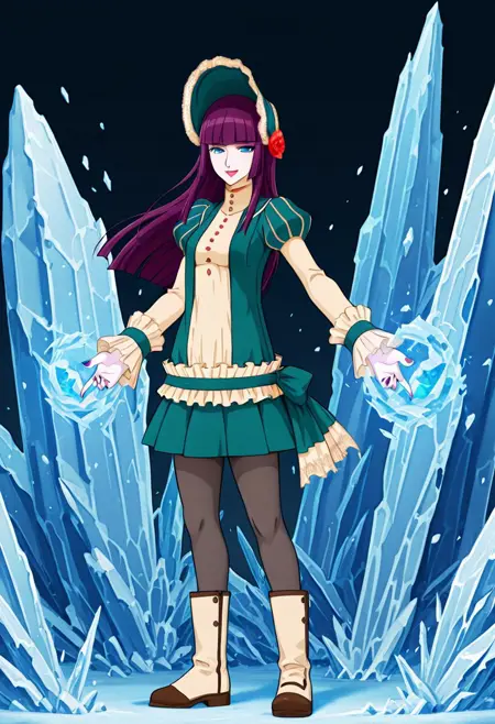 TAGS : Loretta Lecarde,purple hair,blunt bangs,hime cut,blue eyes,long hair,red lips.lolita fashion,bonnet,boots,pantyhose,red rose,dress,skirt,