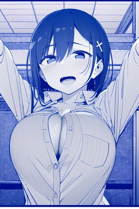 基于比村奇石《星期一的丰满》训练,使用monochrome等prompt可最大限度复现原画风。