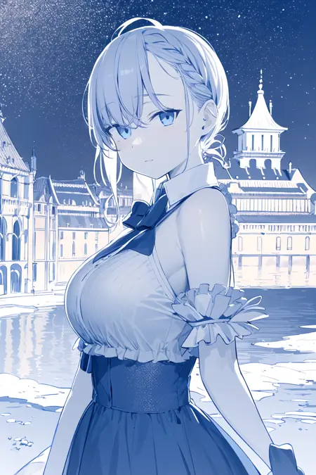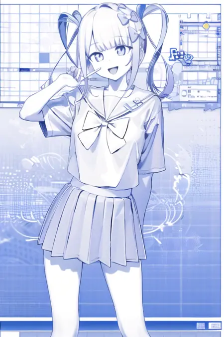 Note: if you want to make Himura-style blue-line arts, don't mention any color other than blue and white in your prompt!