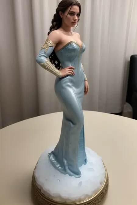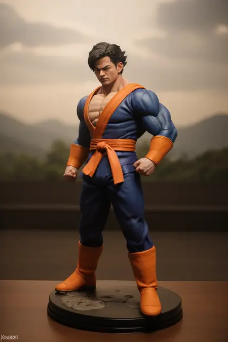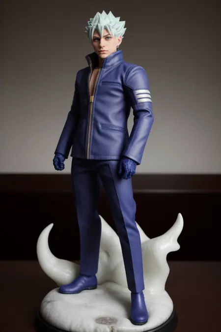 cinematic photo , photo , (best quality), (masterpiece), (realistic), (intricate), <lora:PVCStatuesQuiron_v09i01e25t05_Lora:1> pvcstatuesQuiron, Killua Zoldyck (Hunter x Hunter): Killua's white and blue outfit, spiky silver hair,