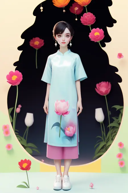 (masterpiece,best quality:1.5),( {short hair | long hair}, __*/haircolor__ hair:1.1),__*/colors__ aodai,(full body:1.2),white shoes,