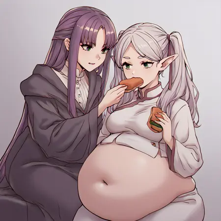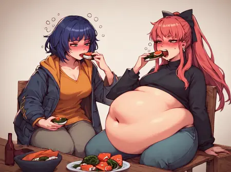 belly, feed food, feed cocktail, feed hose, sit, chair, huge belly, round belly,