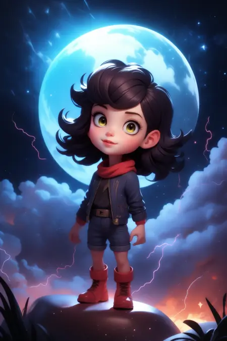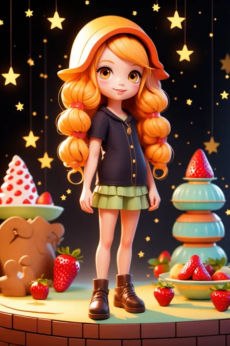 关键词:3d角色, 3d可爱角色, chibi, 云朵, 波浪, 渐变背景, 简单背景, 色彩丰富