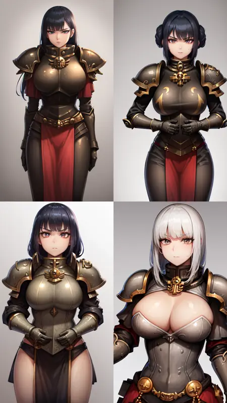 This Lora can give your characters Adepta Sororitas-esque armor. Full blast for anime models, up to 0.5 for photo models. My first attempts at LoRA training, I have absolutely no idea what I'm doing. Help.