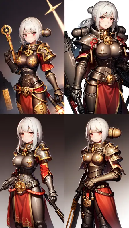 This Lora can give your characters Adepta Sororitas-esque armor. Full blast for anime models, up to 0.5 for photo models. My first attempts at LoRA training, I have absolutely no idea what I'm doing. Help.
