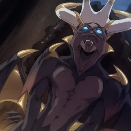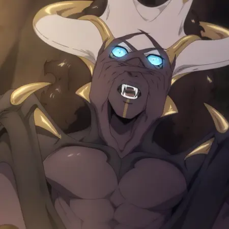 Edouard Night Creature, Bright Blue Eyes, Wings, Horns, Fangs, Bright Eyes, Tail, Fangs,