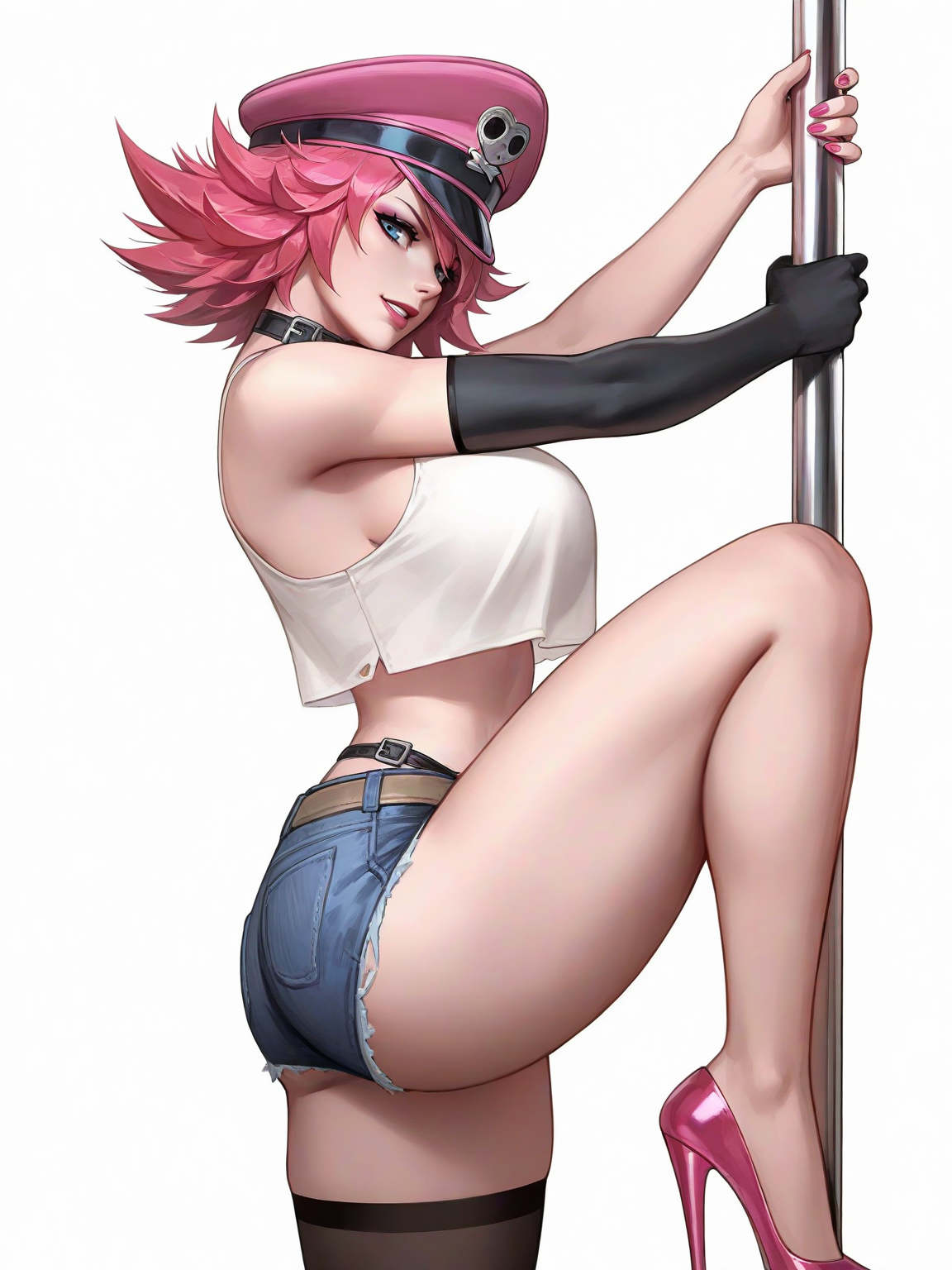 근육질의 여자, 큰 가슴, 분홍색 머리, 파란 눈, 메이크업, 짧은 머리 | 긴 머리