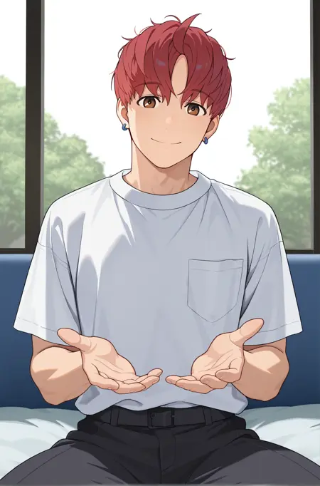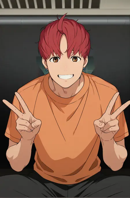 jiji, enjoji jin, red hair, brown eyes, earrings