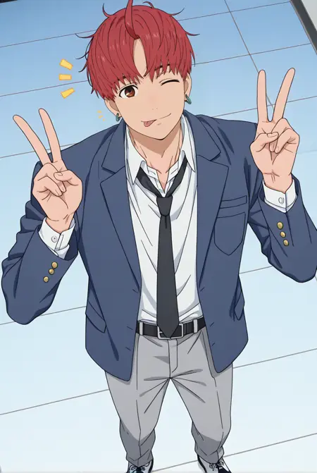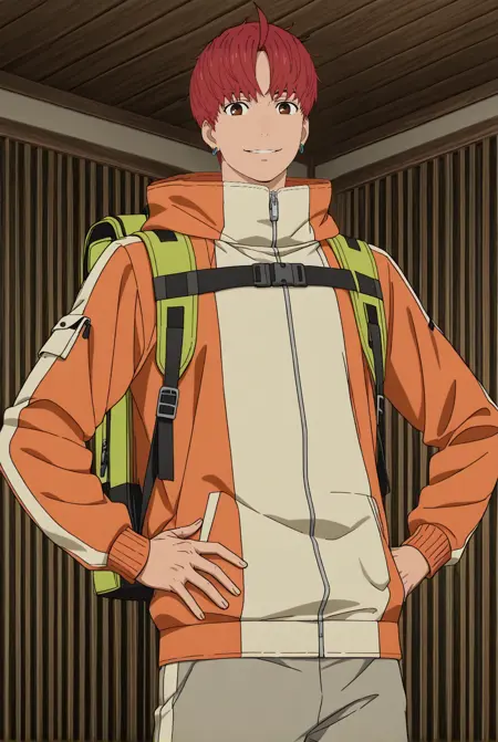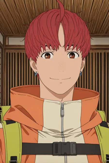 jiji, enjoji jin, red hair, brown eyes, earrings