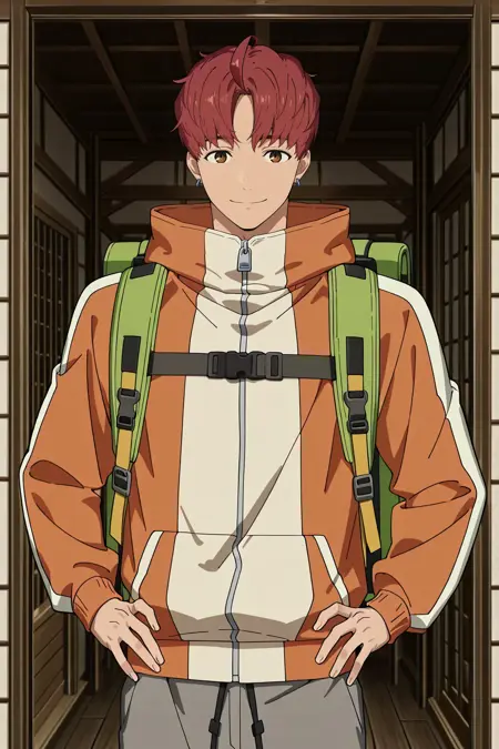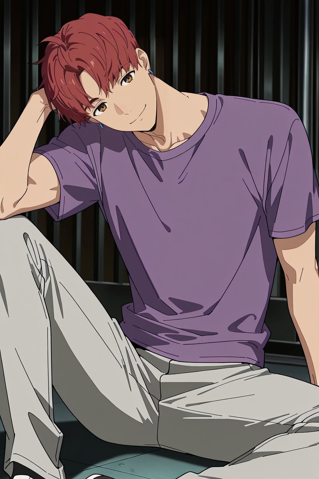 jiji, enjoji jin, red hair, brown eyes, earrings