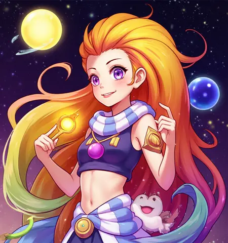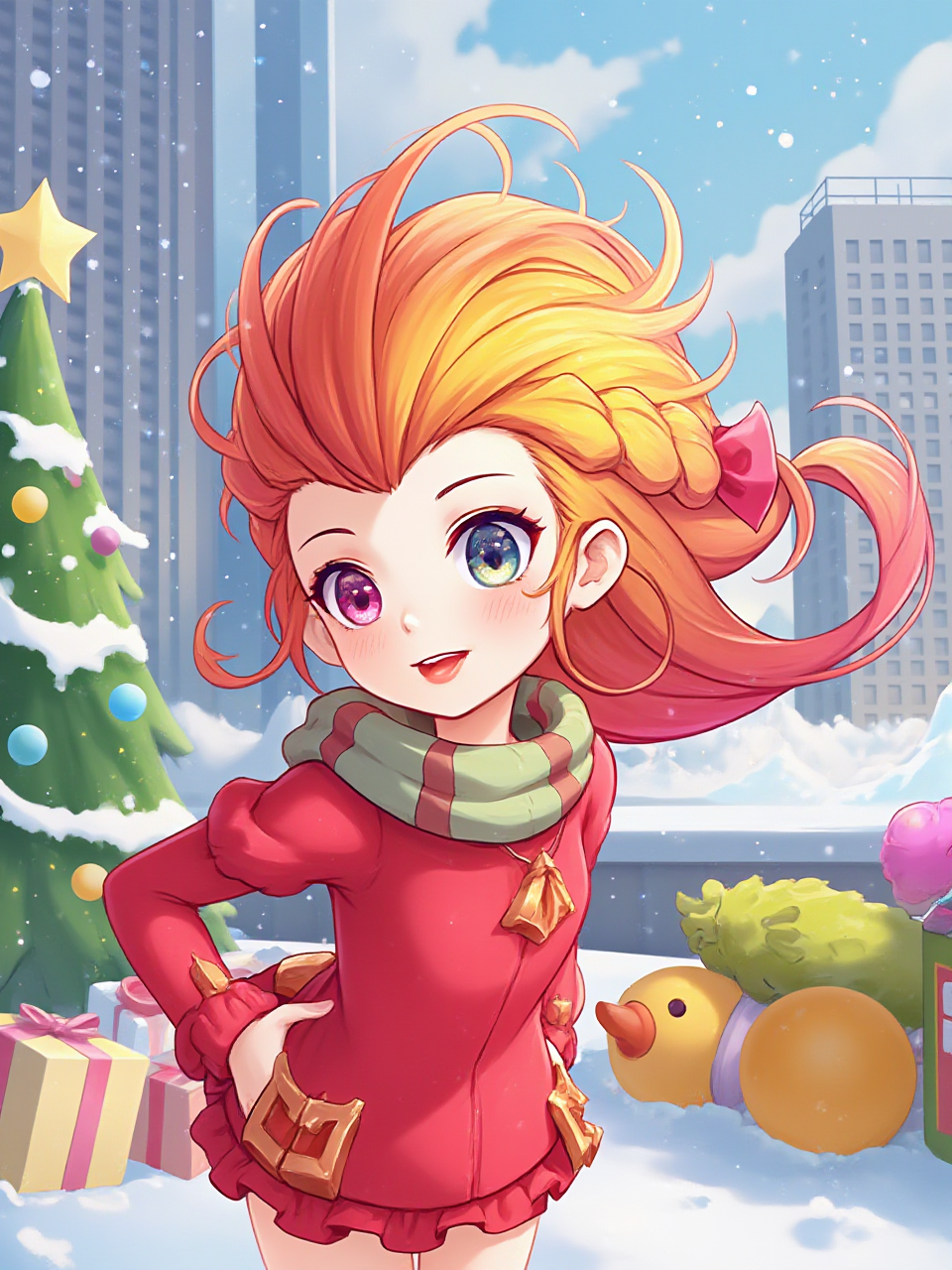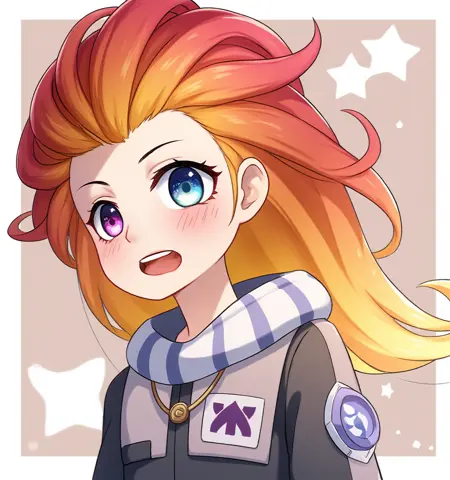 Note that while the hair color can be altered as per your preference, it's recommended to maintain a dual or multi-color scheme to stay true to her distinctive appearance. This prompt should help in achieving more accurate and stylistically consistent results.