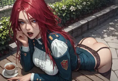 succubus_h, 1girl, 빨간 머리, 파란 눈, 큰 가슴