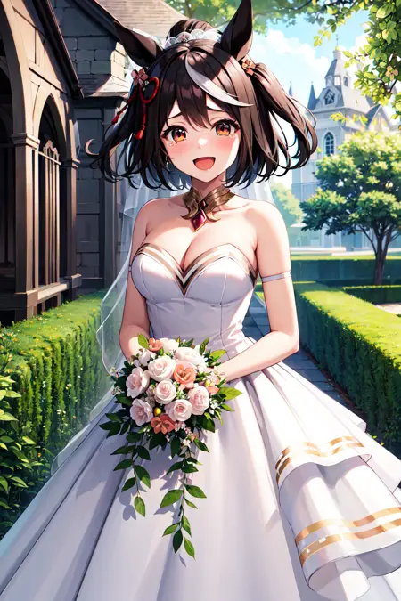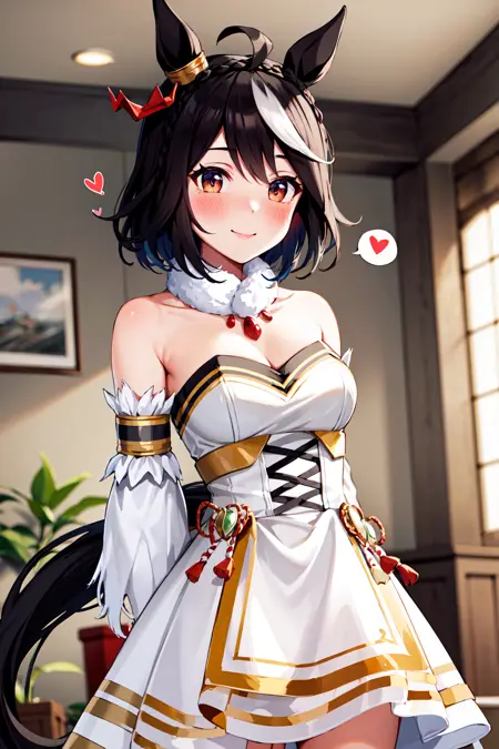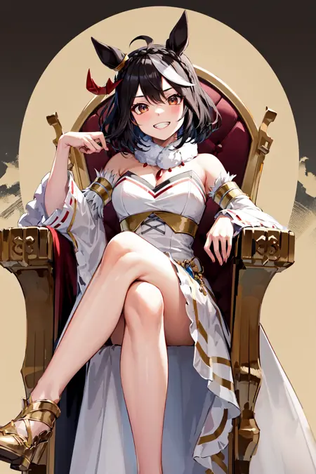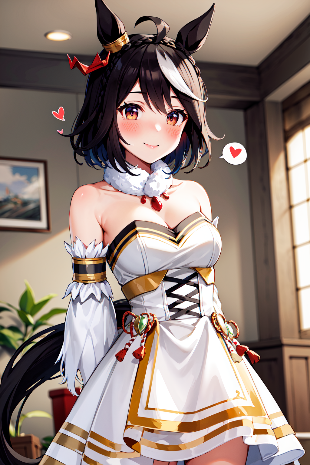 cckitasan, animal ears, short hair, streaked hair, braid, ear ornament, horse tail, white dress, detached sleeves