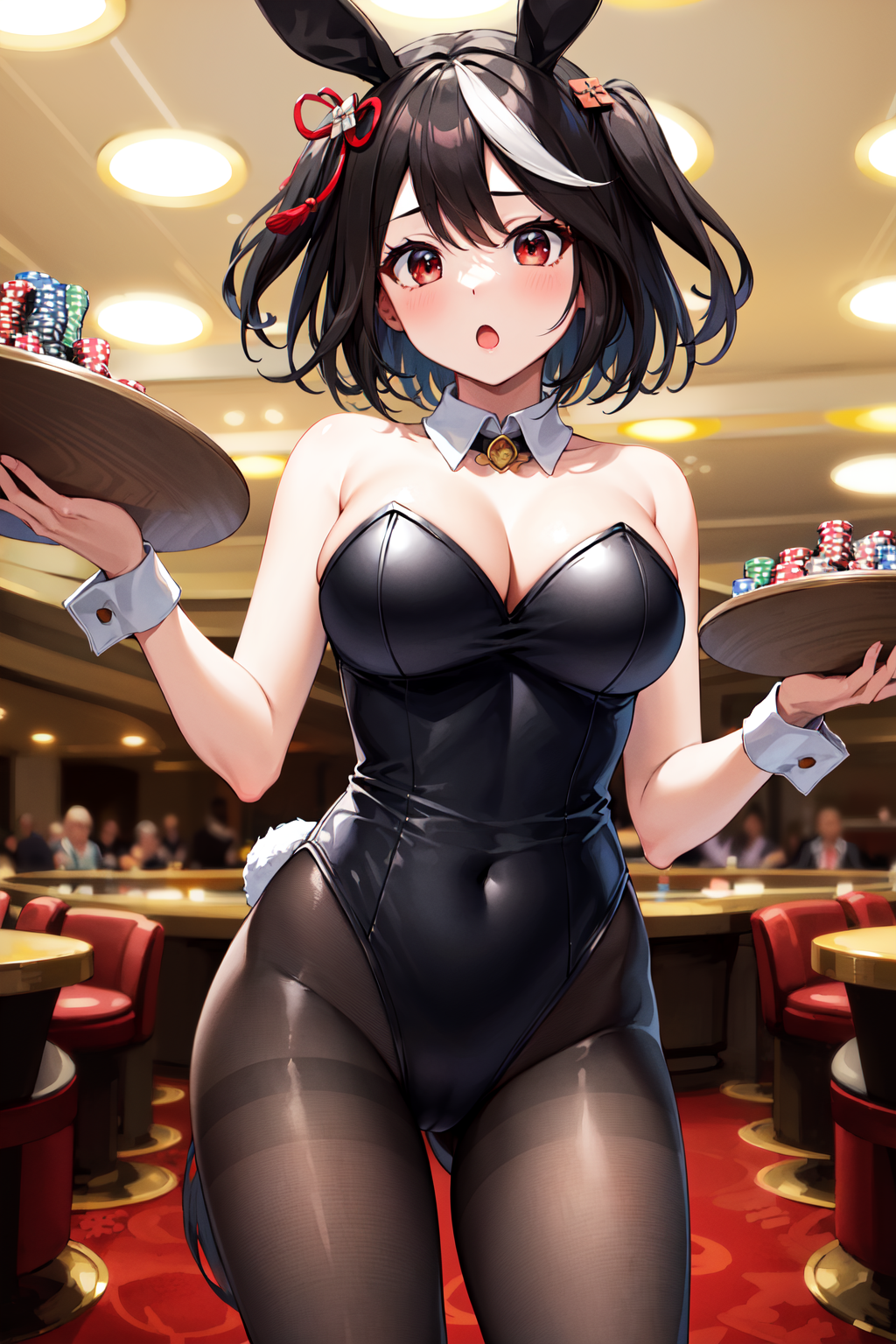 bbkitasan, animal ears, short hair, streaked hair, hair ornament, horse tail, tracen training uniform, red jacket, track jacket, long sleeves, red pants