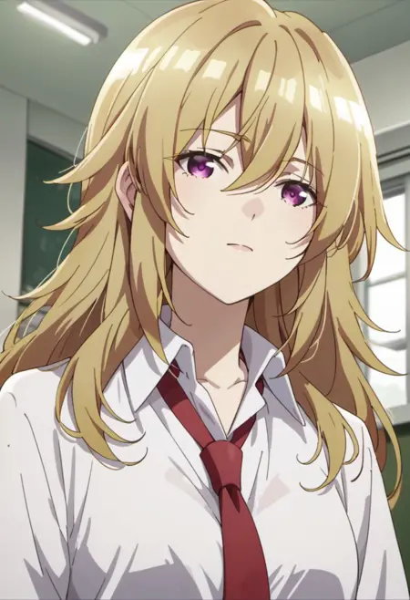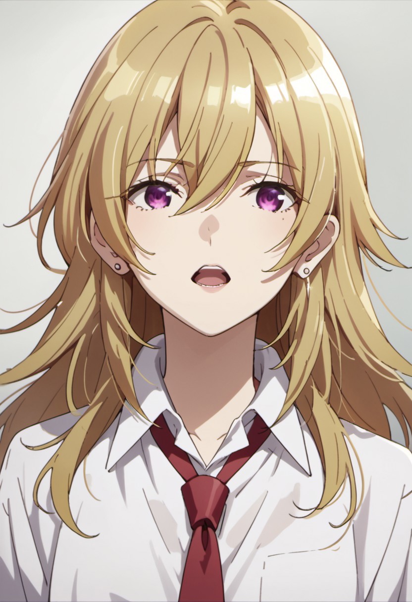 トリガーワード: konno erika, ブロンドの髪, 紫の目, 長い髪