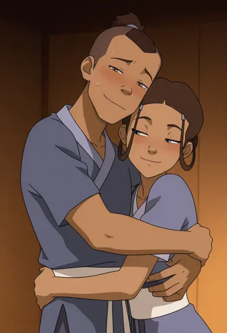1girl, katara, brown hair, dark skin, dark-skinned female, choker, jewelry, hair ornament, braid blue robe
