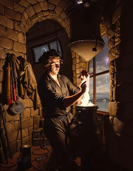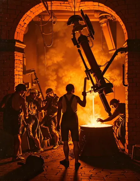 ライトはまた、絵画の中で勃興する産業革命にも取り組み、工場、鉄工所、科学実験の様子を描いた。彼の作品は当時の技術的進歩に伴う畏敬の念と好奇心を捉えている。