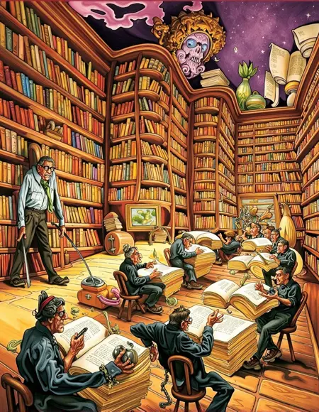 他最重要的贡献之一是与特里·普拉切特在《碟形世界》系列上的合作,他的封面艺术成为这一广受喜爱的奇幻系列的代名词。柯比的插画巧妙地捕捉了普拉切特文字中的幽默、机智与古怪,成为《碟形世界》宇宙不可或缺的一部分。