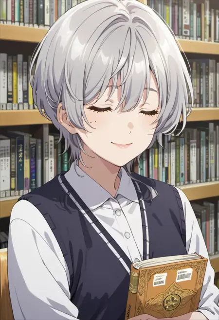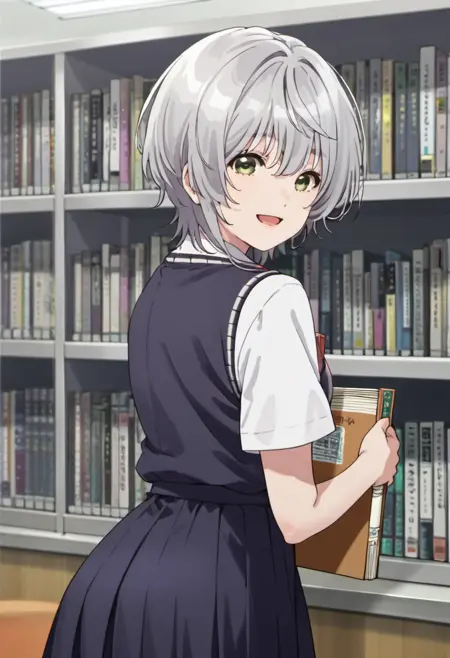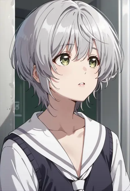 :kikuchi fuuka,灰发,短发,绿眼
