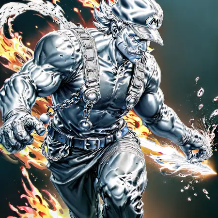 This LoRA was trained with the intention of making skin a glowing chrome.