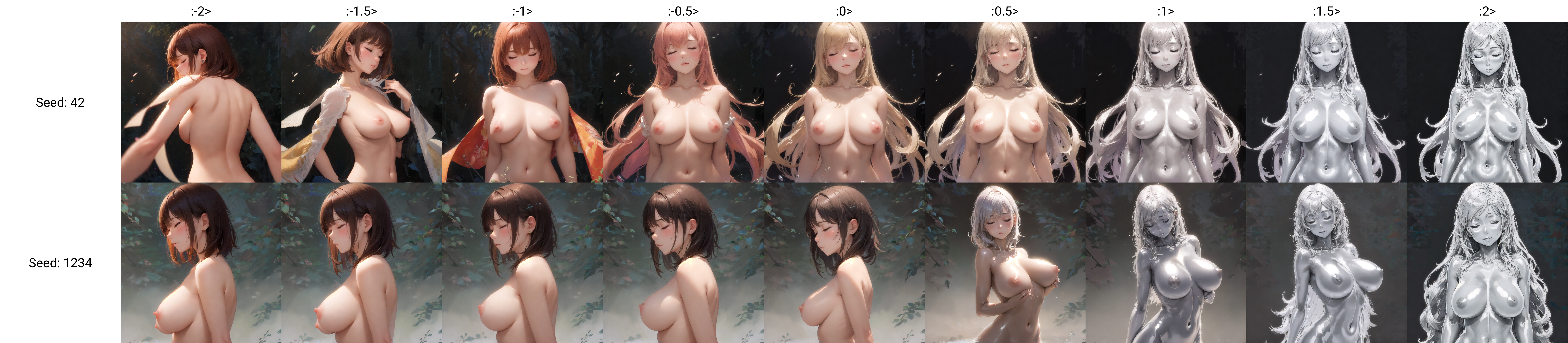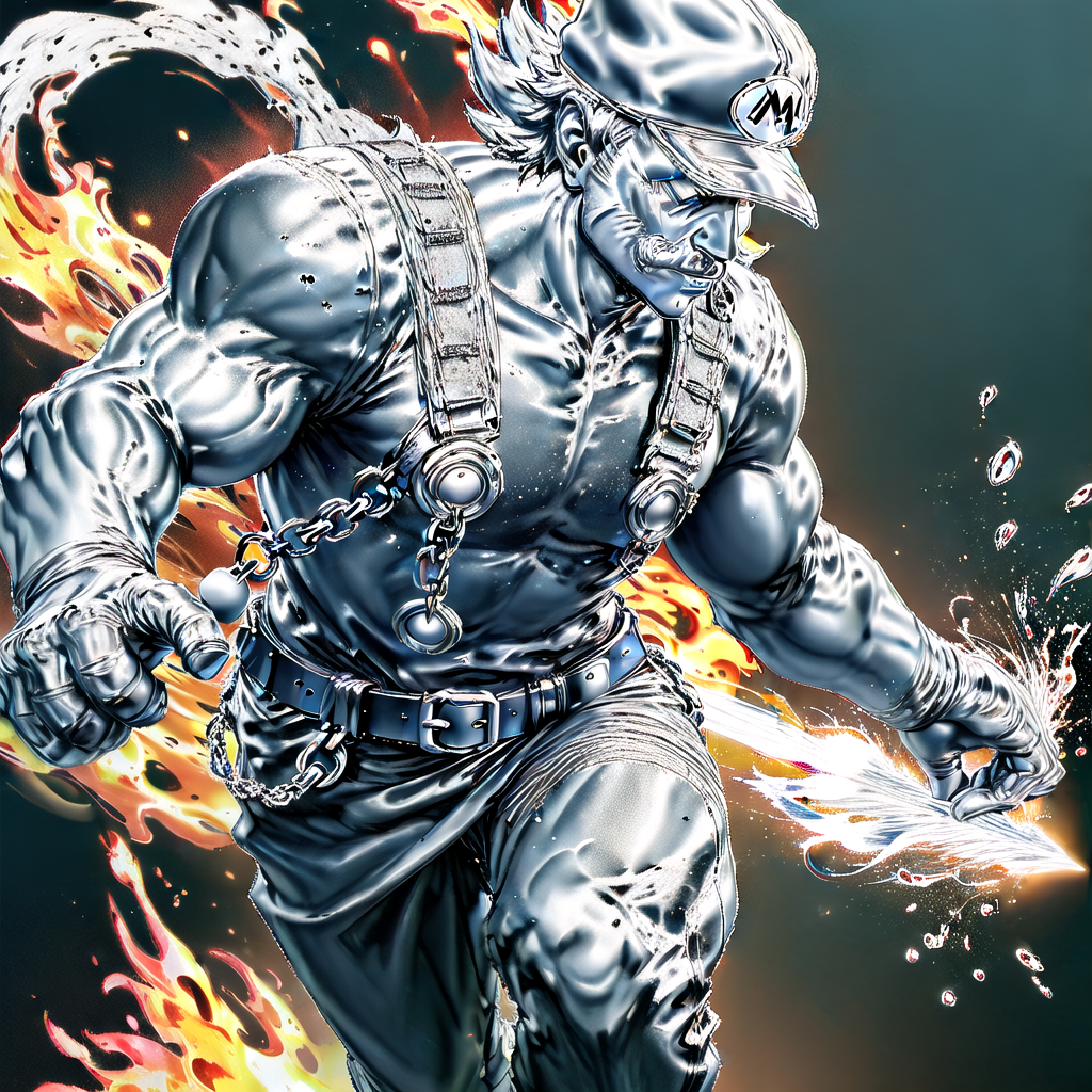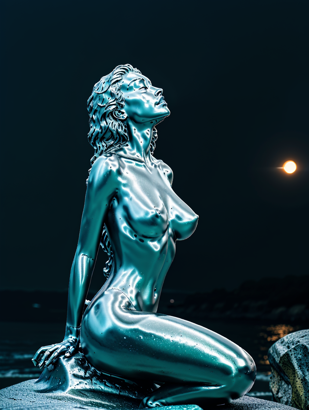 このLoRAは、肌を輝くクロームのようにすることを意図して学習されました。