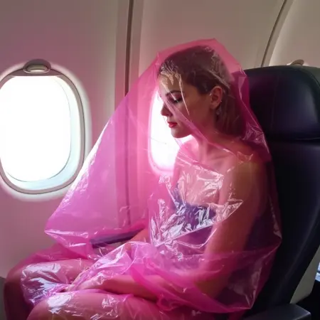 <主体> <姿势> 被<颜色[不透明度说明符]>塑料覆盖[袋子]