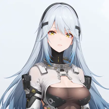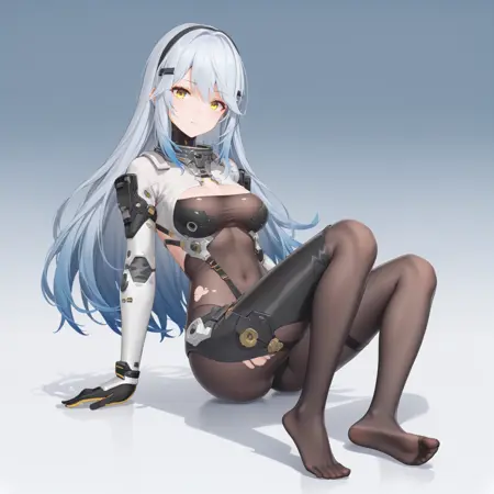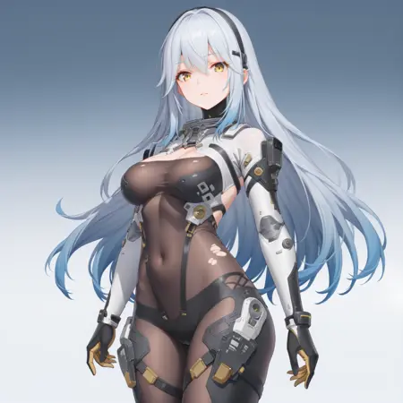 yellow eyes, silver hair, gradient hair, bodysuit