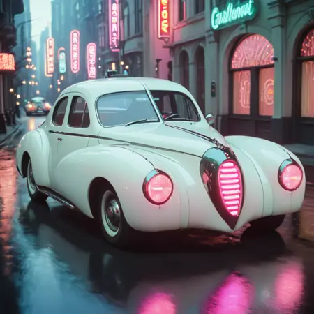 This LoRA aesthetic is something that never existed - 1940s Cyberpunk viewed through the vibrant lens of Technicolor. Combining retro-futuristic elements with the classic film noir mood of the 1940s.