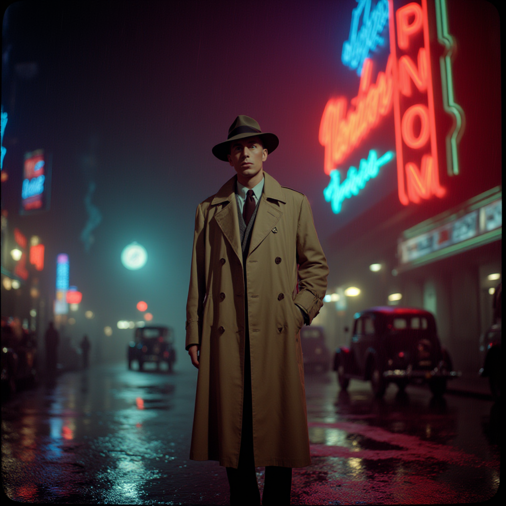 このLoRAの美学はかつて存在しなかったもの——テクニカラーの鮮やかなレンズを通して見る1940年代サイバーパンク。1940年代のクラシックな映画ニル風のムードとレトロ・フューチャリスティックな要素を組み合わせています。