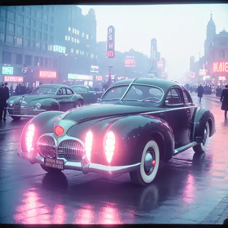 This LoRA aesthetic is something that never existed - 1940s Cyberpunk viewed through the vibrant lens of Technicolor. Combining retro-futuristic elements with the classic film noir mood of the 1940s.