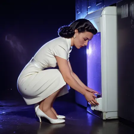 이 LoRA의 미학은 결코 존재하지 않았던 것입니다—테크니컬러의 생동감 있는 렌즈를 통해 본 1940년대 사이버펑크. 1940년대의 고전적인 영화 Noir 분위기와 레트로-퓨처리스틱 요소를 결합했습니다.