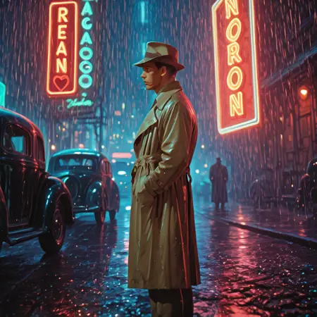 This LoRA aesthetic is something that never existed - 1940s Cyberpunk viewed through the vibrant lens of Technicolor. Combining retro-futuristic elements with the classic film noir mood of the 1940s.