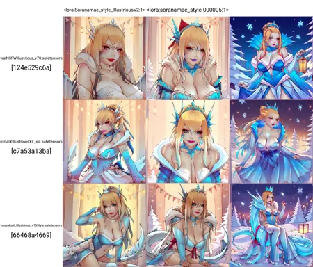 例如,在 <lora:soranamae-style-flux-test2:**1**> 中,缩放系数设为1,表示无增强效果;而在 <lora:soranamae-style-flux-test2:**3**> 中,LoRA的效果增强至300%。