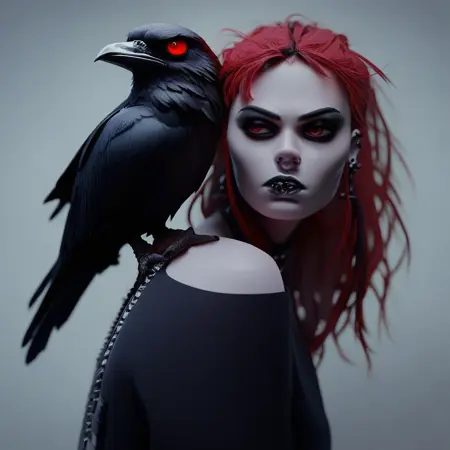 raven on shoulder, raven, bird, bird on shoulder, animal on shoulder