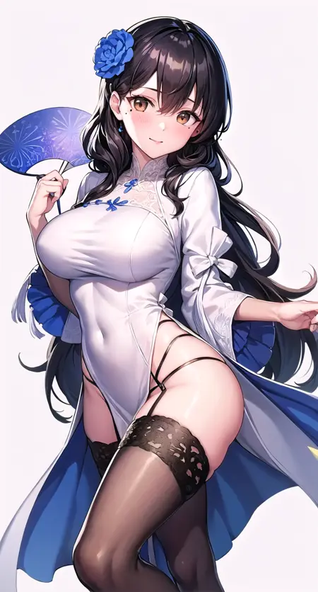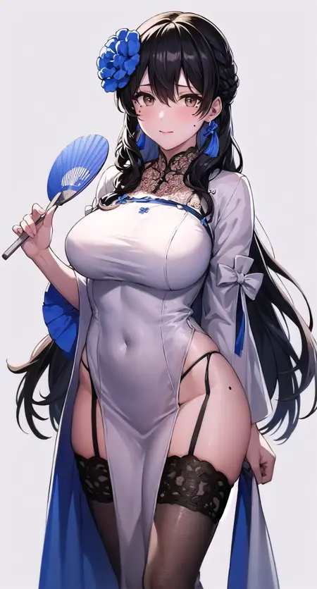 PS:你可以将其作为角色LoRA使用,建议提示词: narcissus hairstyle, outfit-narcissus, 1girl, long hair, mole under eye, solo, mole, looking at viewer, breasts, hand fan, blush, hair flower, flower, holding,,white background, brown eyes, holding fan, bangs, very long hair, simple background, black hair, large breasts, paper fan, hair between eyes