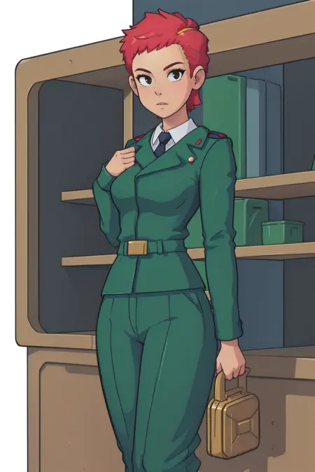 A LoRA of Green Earth's tank lady from Advance Wars. Trigger phrase is "AWJess", prompts like "Necktie", "Pants", and "Military Uniform" useful if you want her game accurate appearance.