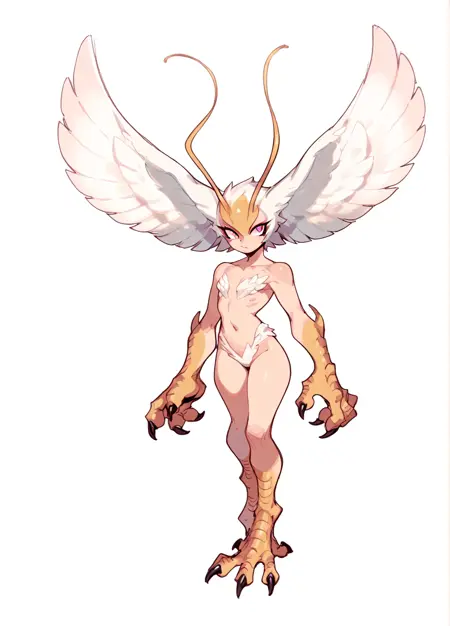 怪物女孩,独唱,鸟鱼女,头部有翅膀,白色羽毛,动物爪子,触角