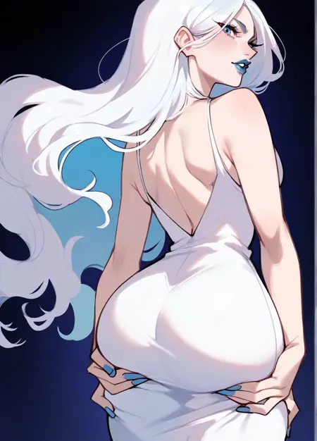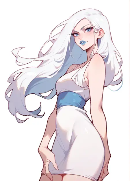 1个女孩,独唱,人鱼女,白发,蓝眼,长发,蓝色唇膏,白裙子