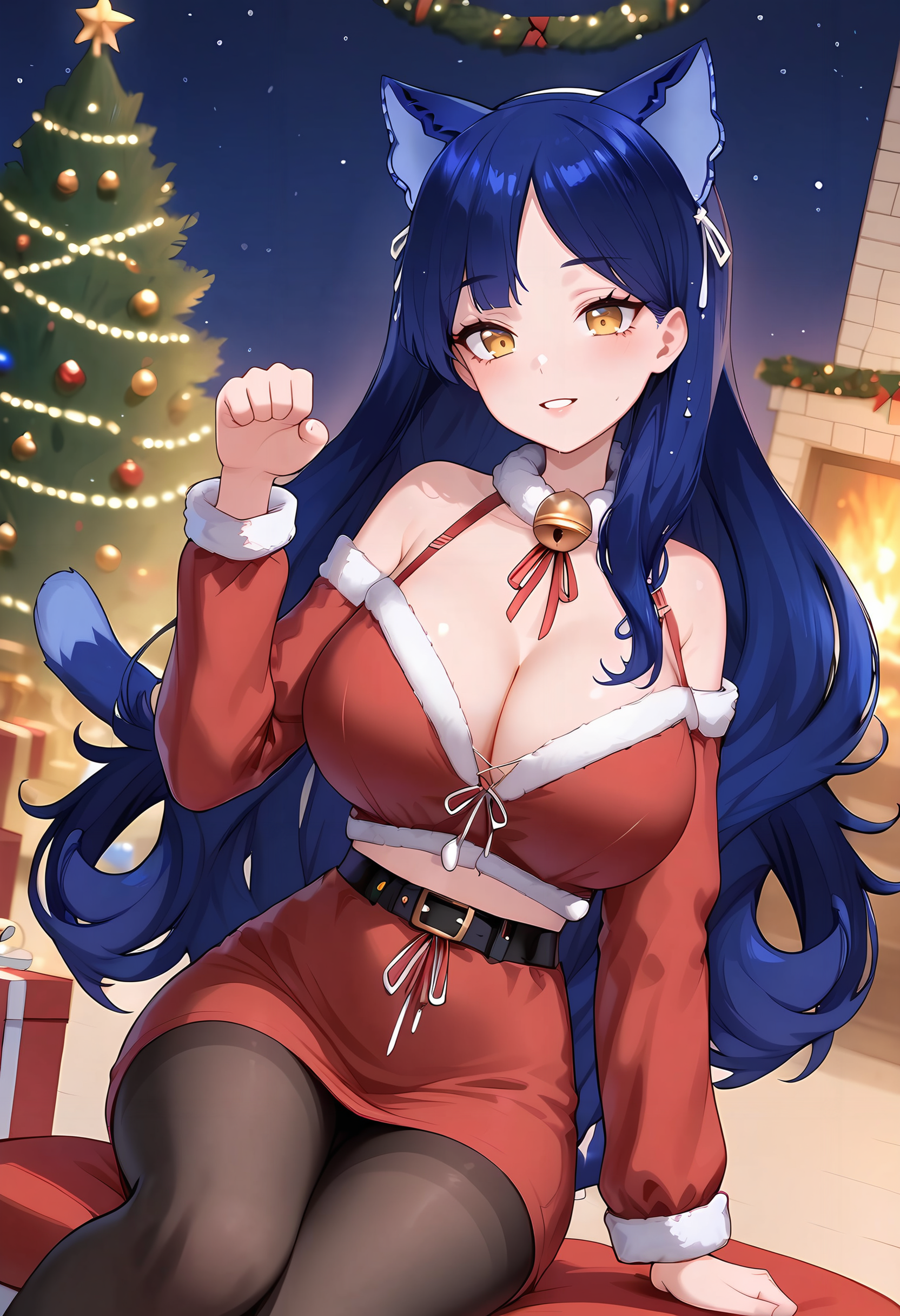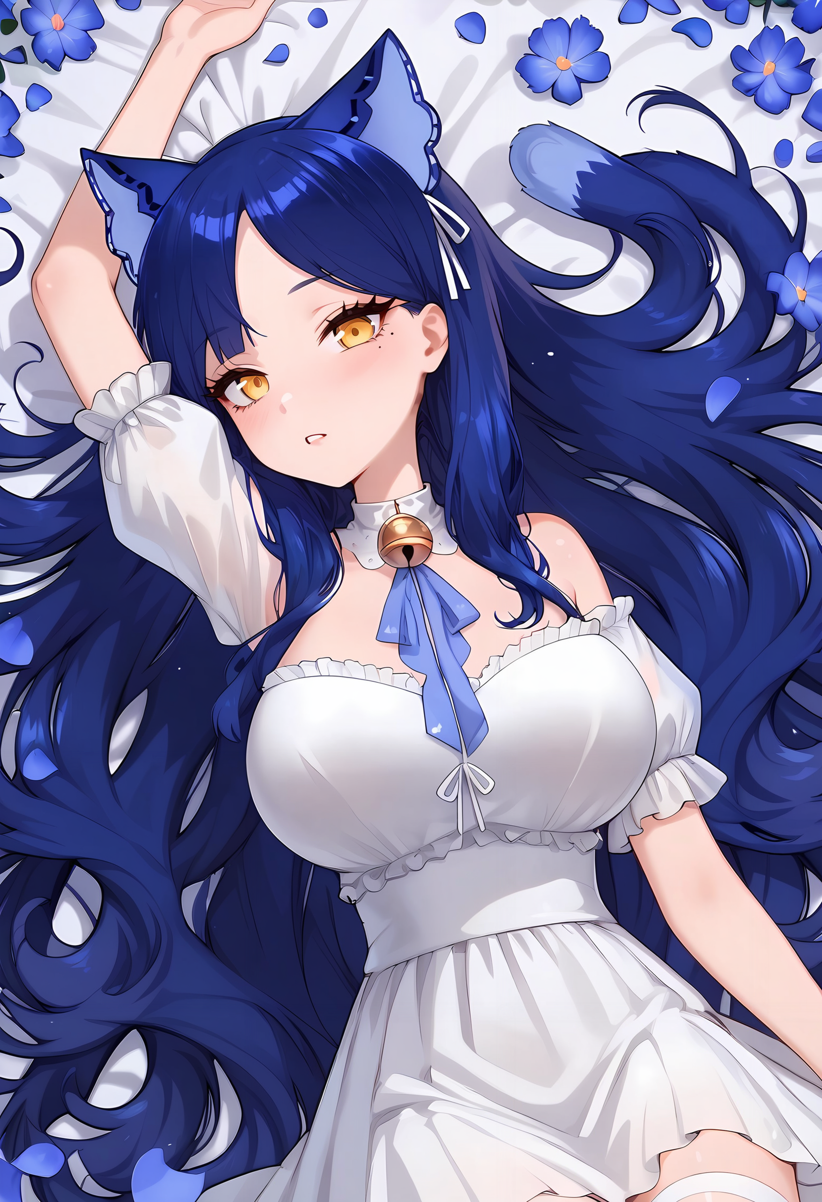 snezha,1girl,long hair,cat ears,large breasts,blue hair,yellow eyes,