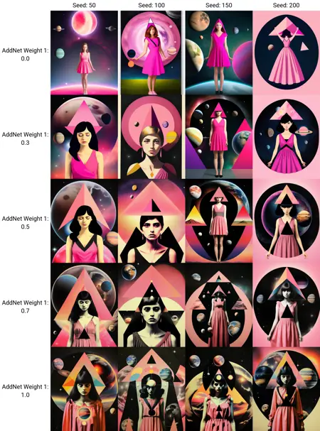 훈련 과정에서 기하학적 여성 모델은 기하학적 구성과 여성 주체를 결합한 이미지로 구성된 선별된 데이터셋을 활용했습니다. 이 데이터셋은 추상적이고 현대적인 기하학적 디자인 스타일을 포함한 다양한 예술적 양식을 아우르며, 모델은 이 데이터셋을 분석하고 학습함으로써 기하학적 형태와 여성 몸매의 아름다움 및 우아함을 조화롭게 통합하는 깊이 있는 이해를 얻었습니다.