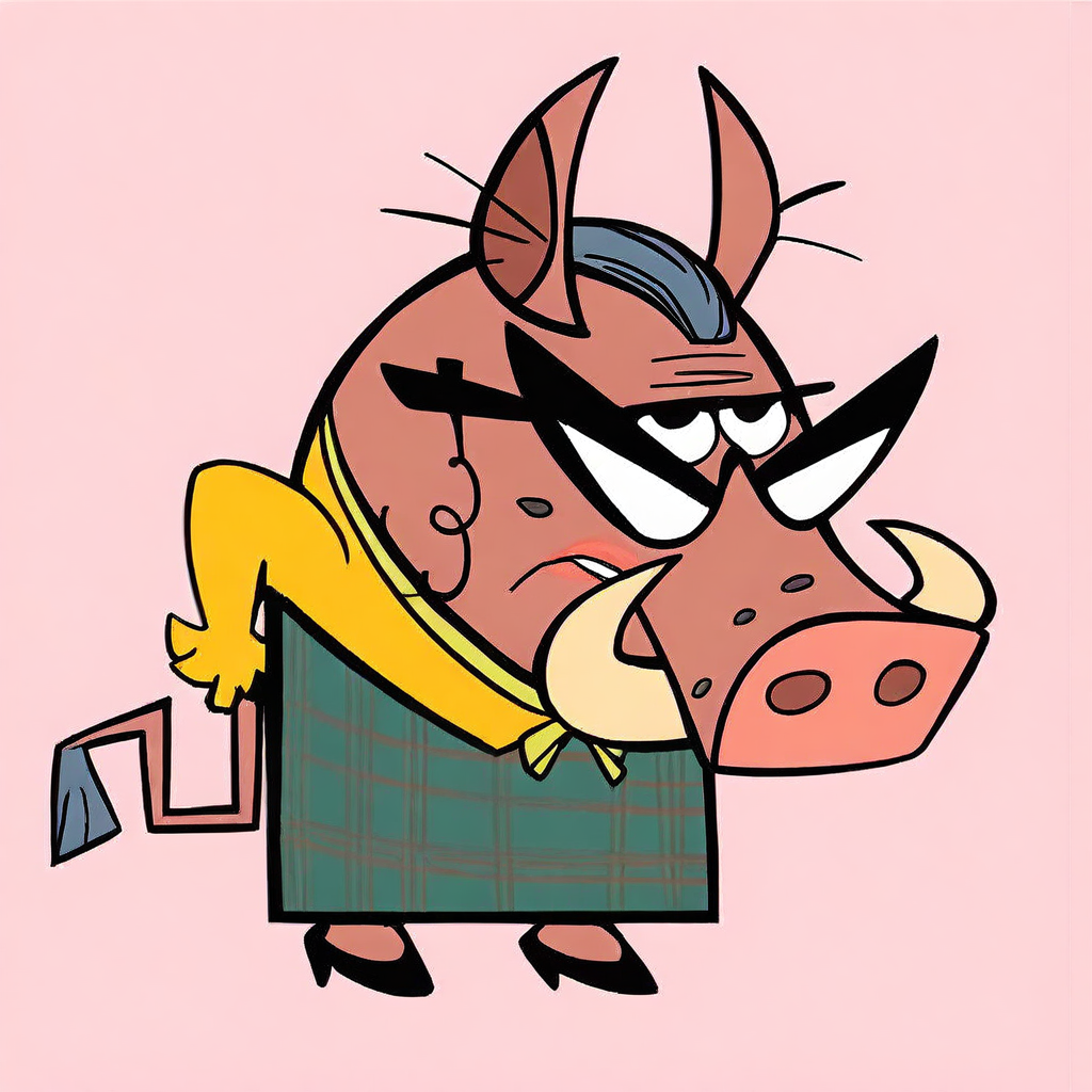 「マイ・ジェン・パートナーはサル」というCNのアニメに登場する、ピクシー・フロッグ(カエル)である学校長の助手を務める老いたイノシシ。